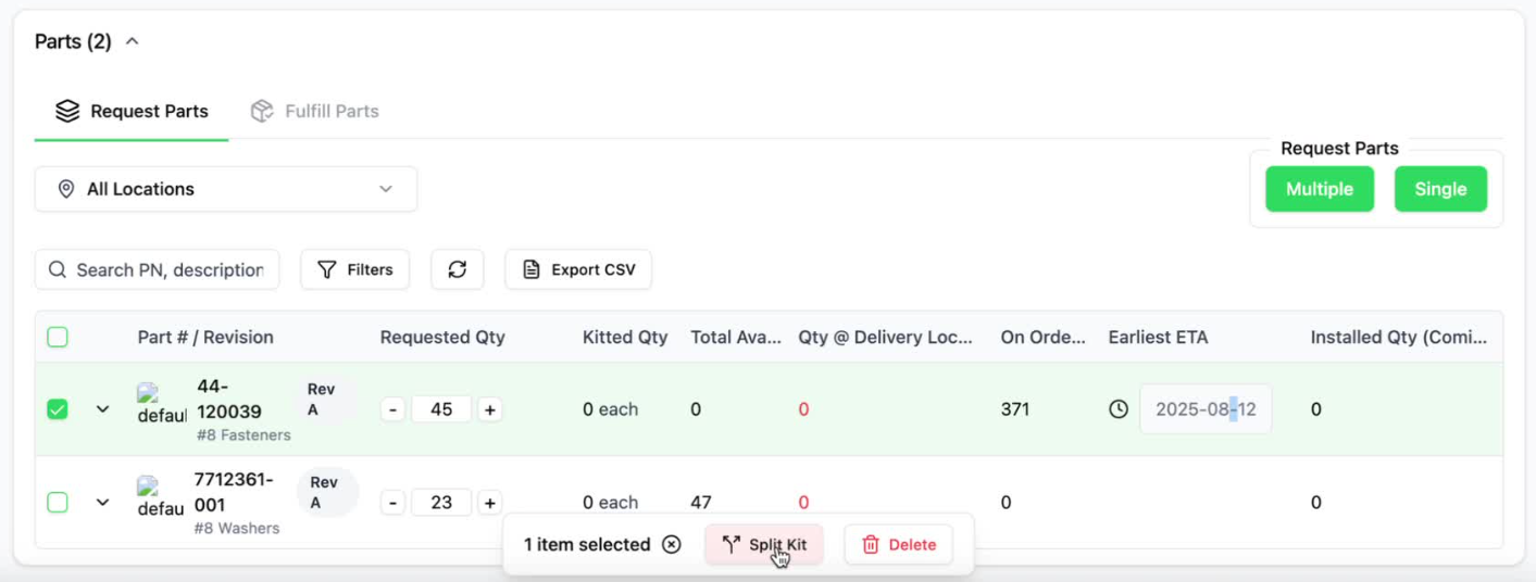 ION now surfaces inventory shortages on kits and makes splitting kits simple to ensure material handlers don't have to second guess what to deliver. Split off the shortages into new kits to turn shortages into clear follow-ups while letting the floor pick and stage what’s ready now—reducing line stops, cutting expedite thrash, and improving on-time starts.