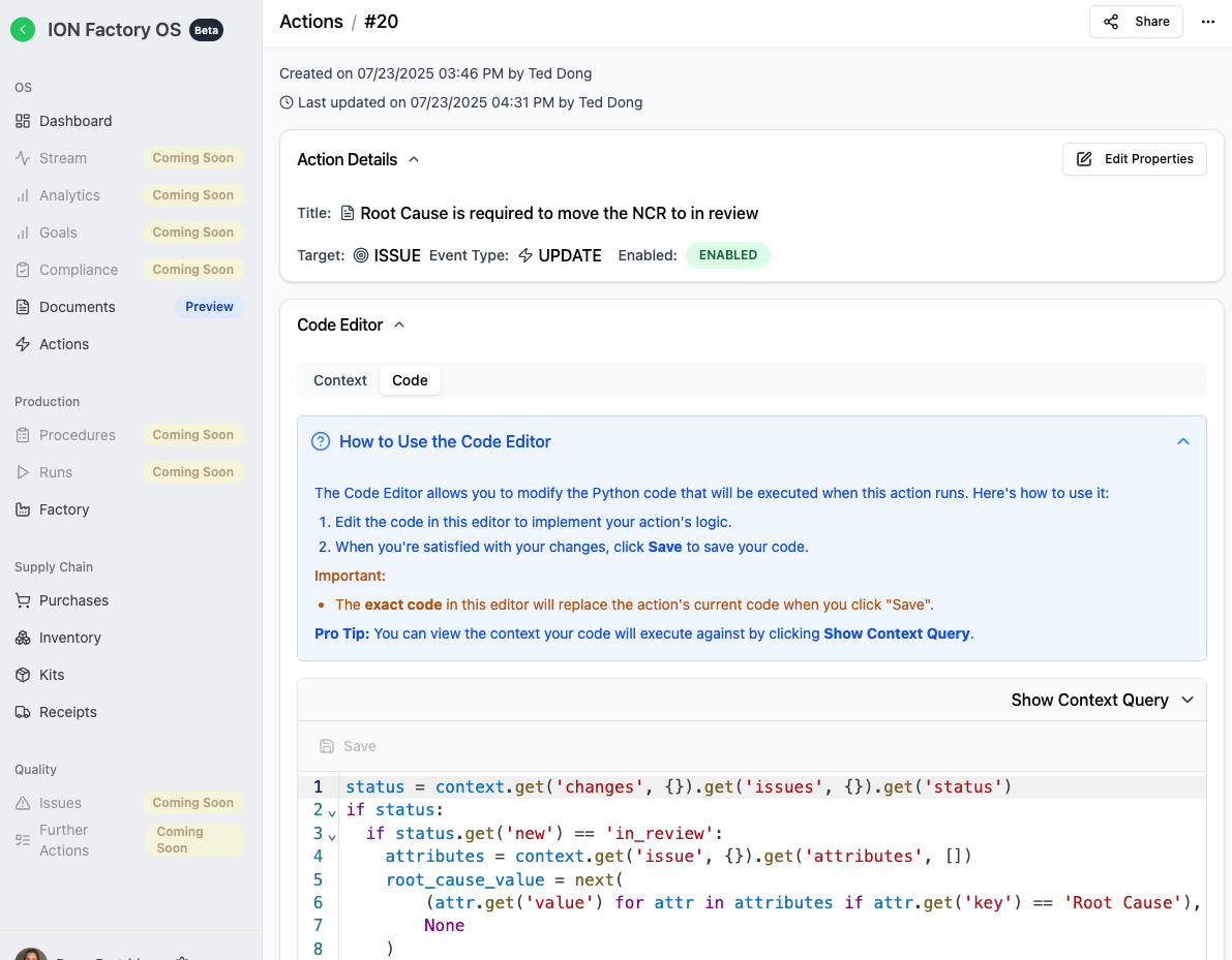 Better Visibility & Control: ION Actions have been improved to give you clearer, more powerful digital guardrails.